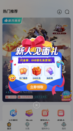 4、也可以通过分类页面或福利中心,找到想玩的游戏和礼包进行下载。