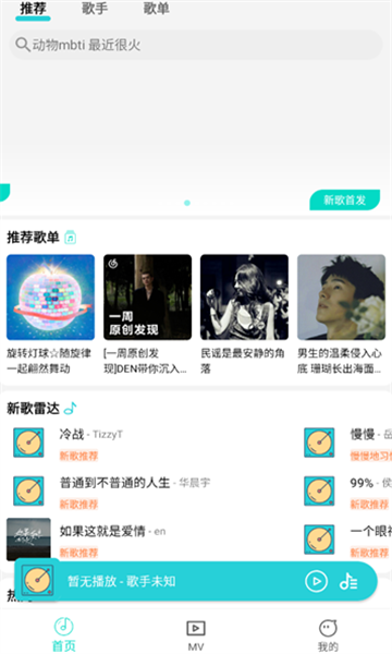 1、下载并打开软件,可以在主页看到许多热门歌曲