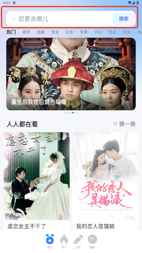 2、输入关键字以查找要观看的短片。