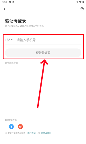 3、接着可以选择使用手机号或者微博进行登录,选择自己平时常用的方式即可。