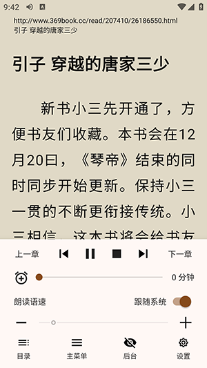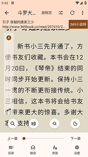 6、点击朗读选项,即可在线收听小说内容。