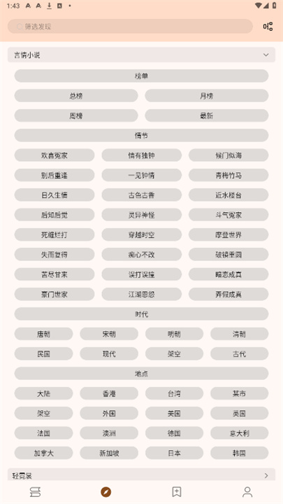 4、根据个人阅读偏好进入分类页面,挑选自己感兴趣的小说进行阅读。