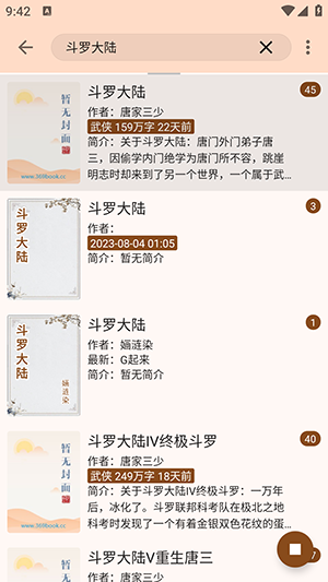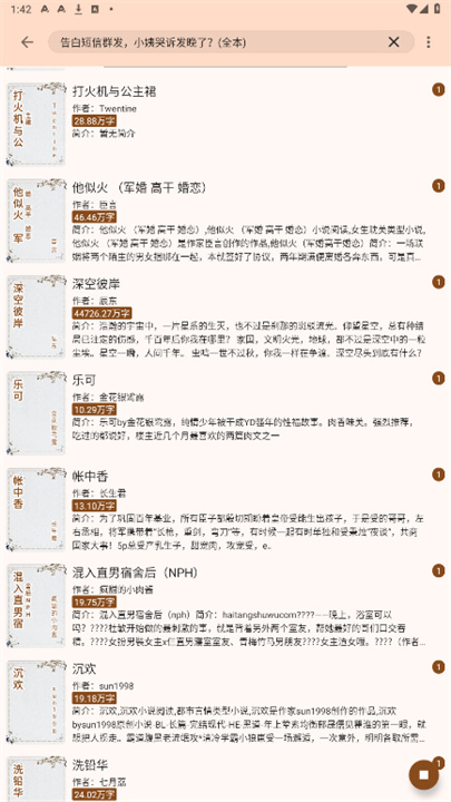 3、在搜索栏中输入小说名称或作者名字,查看匹配的搜索结果。