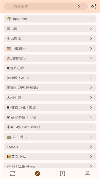 1、打开玄幻阁最新版本软件后,点击底部第二个图标,即可查看到丰富的书源列表。