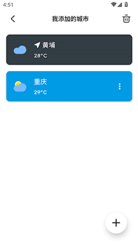 2、点击界面上方的楼房图标即可添加新的城市,并可一键在城市之间切换。
