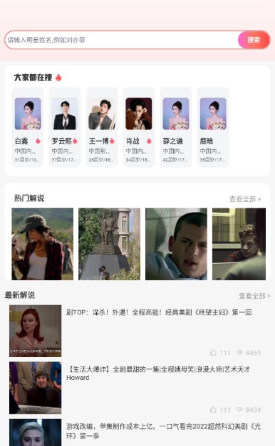 1、主页将推送各种电影、电视节目和名人的基本介绍,帮助大家了解影视行业的发展。
