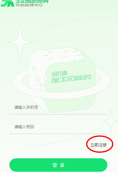 1、访问不可能的世界小说免费版官方平台:https://zuozhe.bkneng.com/author/passport/login,然后点击“成为作者”。