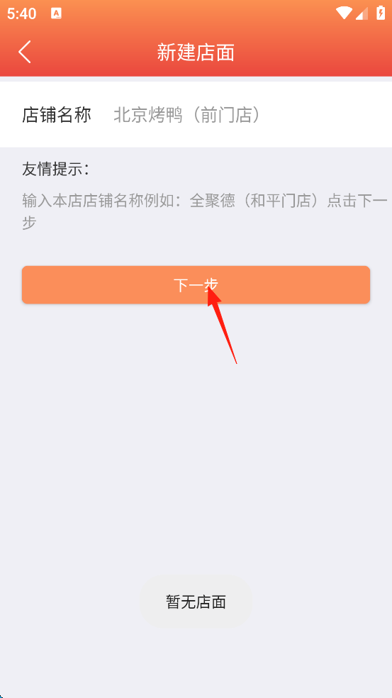 2、输入店铺名称后,再点击“下一步”继续操作。