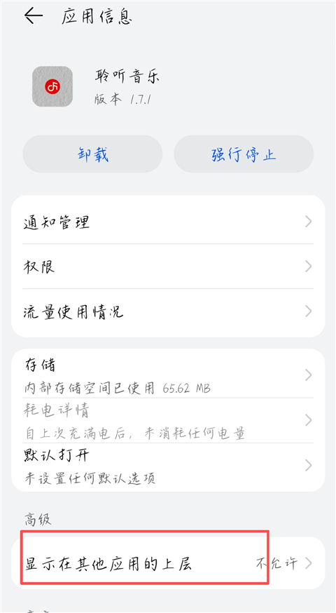 3、会自动跳转到手机的系统设置界面,点击【显示在其他应用上层】并将其打开;
