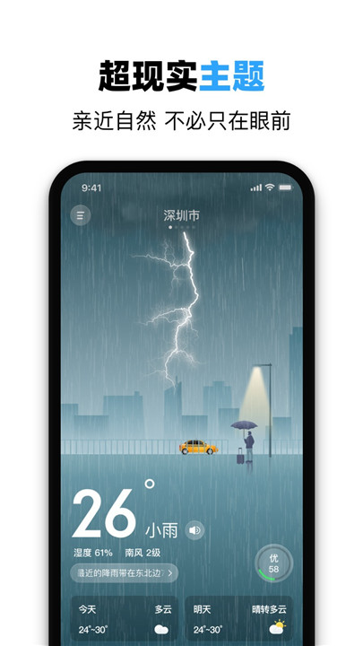 2、实时天气查询,准确显示温度、湿度、风向和降水量。