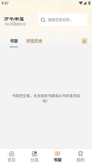 1、在万千书屋纯净版书架界面,点击右上角的导入符号。
