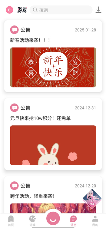 游咔5.0.0最新版经常推出各种礼包和福利活动,玩家可以在线领取,享受游戏内外双重福利,玩家可以轻松管理已安装的游戏,卸载、更新、备份等操作,还可以设置游戏消息提醒,在游戏更新时及时收到通知。