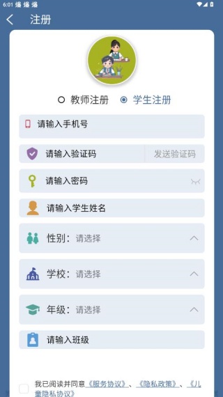 4、学生用户可以直接点击“学生注册”,输入相关信息完成注册,整个操作流程非常方便快捷。
