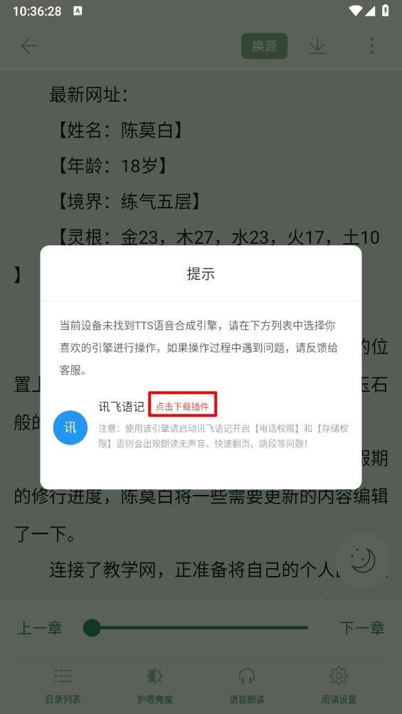 4、最后,根据提示下载所需的听书插件,下载完成后,即可开始享受听书体验。