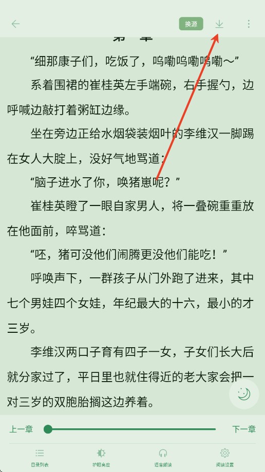 1、进入你想下载的小说的阅读界面,然后点击右上角的下载按钮。