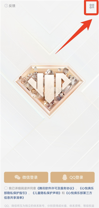 1、在心悦俱乐部腾讯游戏平台App的登录页面右上角,你会看到一个二维码图标,点击该图标。