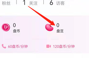 2、点击“盘豆”按钮,在个人主页的上方找到并点击“盘豆”进入。