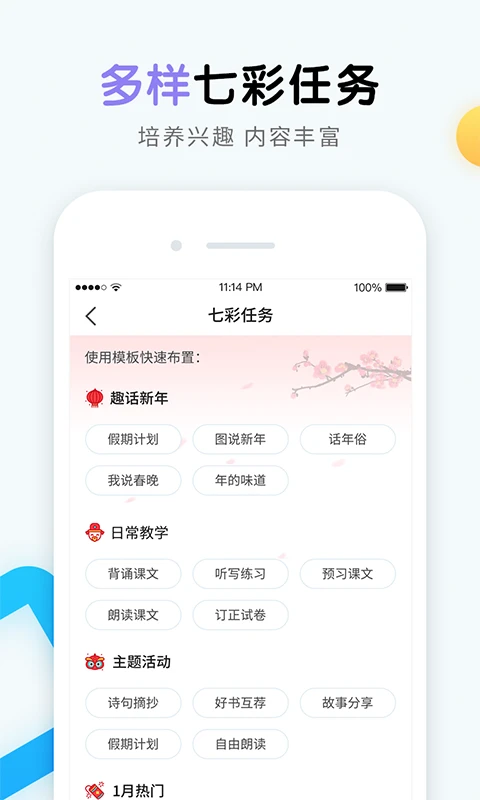 1、多样化的七彩任务,随意选择模板即可快速布置。
