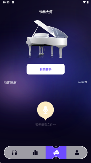 3、进入软件钢琴创作页面后,可进行自由弹奏操作,点击相关功能即可创作属于自己的歌曲。