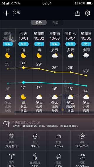 1、生活指数,晴天雨天,很容易安排室内外活动,提供7天天气预报信息,查看一周天气趋势。