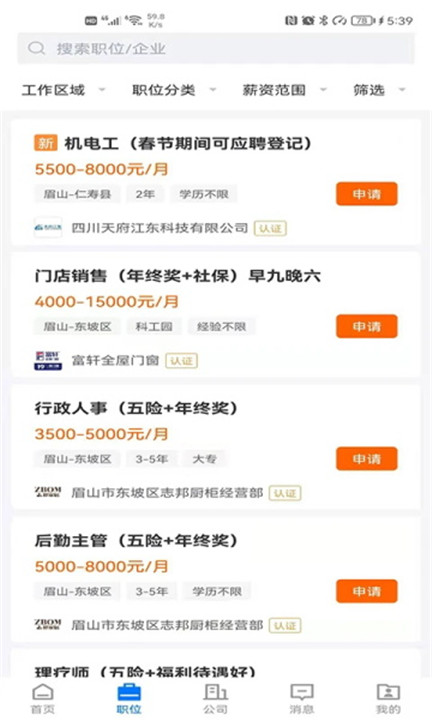4、专注眉山地区招聘信息,覆盖当地企业和职位,帮助求职者快速匹配符合自身条件的职位,避免信息泛滥。