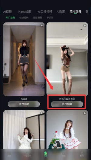 2、进入后,选择“图片跳舞”功能,再点击“创作同款”进入界面。