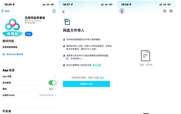 相比百度网盘,百度网盘青春版不提供以下功能:链接或二维码分享与下载,资源仅能从百度网盘导入(且仅限3次机会),或者直接从设备上传等操作。
