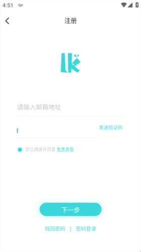 4、输入您的邮箱地址,点击“发送验证码”,然后登录该邮箱的官方网站接收验证码。填写验证码后,点击“下一步”设置账号和密码,注册完成。
