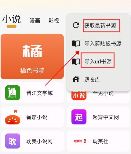 3、用户可以直接选择获取最新的书源,也可以选择手动导入 URL 书源。