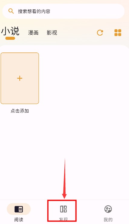 1、进入猫番阅读软件后,点击底部的【发现】,即可进入资源获取的频道界面。
