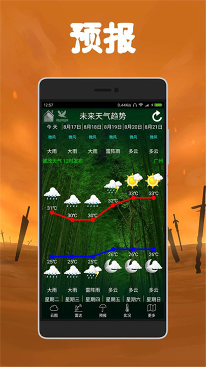 2、了解未来一周天气,提供天气预报图,掌握未来天气趋势。