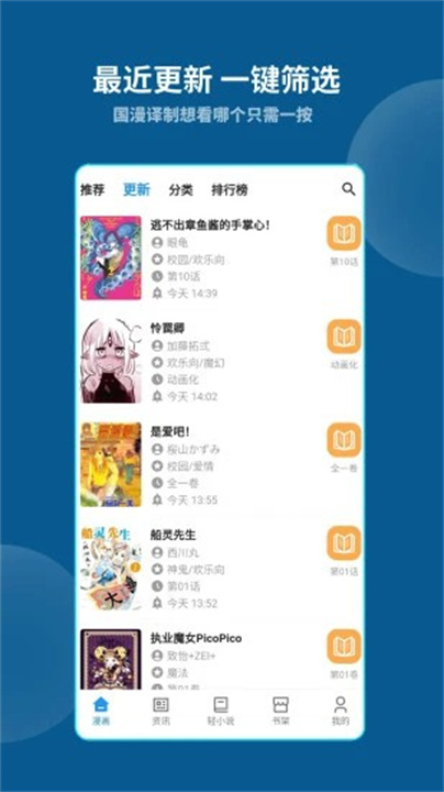 3、快速发现更新的漫画内容,让您在第一时间关注和阅读。