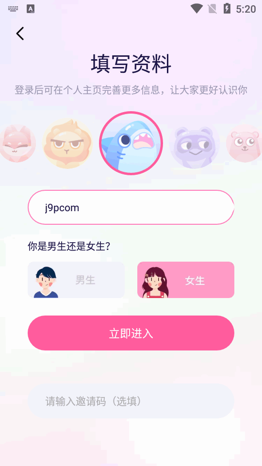 4、登录成功后,填写昵称和性别信息,就可以立即进入软件主界面开始使用。