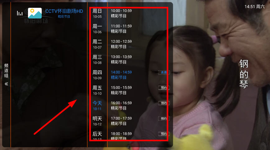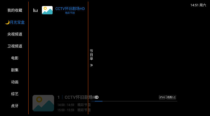 4、可以点击节目单查看每个频道当前播放的节目内容。