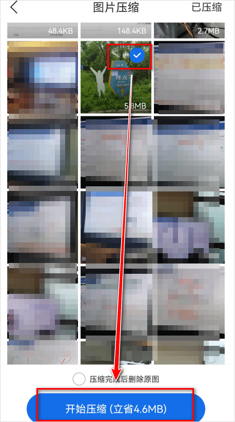 2、选择你需要压缩的图片文件,随后点击【开始压缩】进行处理。