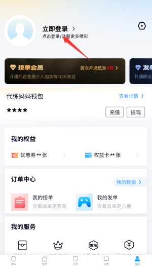 1、启动代练妈妈应用后,点击底部导航栏中的“我的”选项,进入个人中心页面。