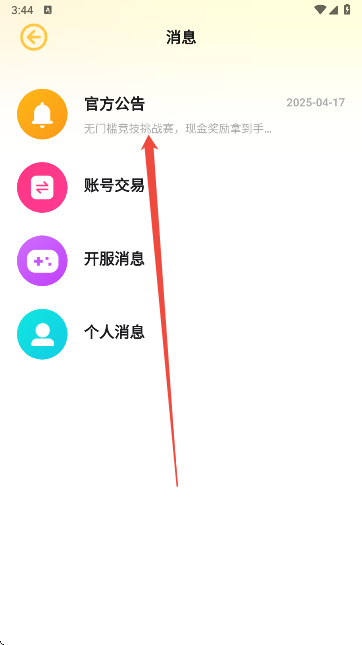 3、接着在弹出的页面中点击“官方公告”。