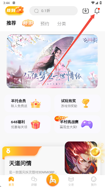 1、首先打开《羊托游》App最新版,小编已经提供了最新的下载地址,大家可以直接下载安装。