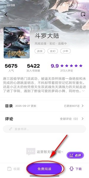 3、选择想要阅读的漫画,进入后点击底部的“免费阅读”,或者点击右侧的“下载”按钮;