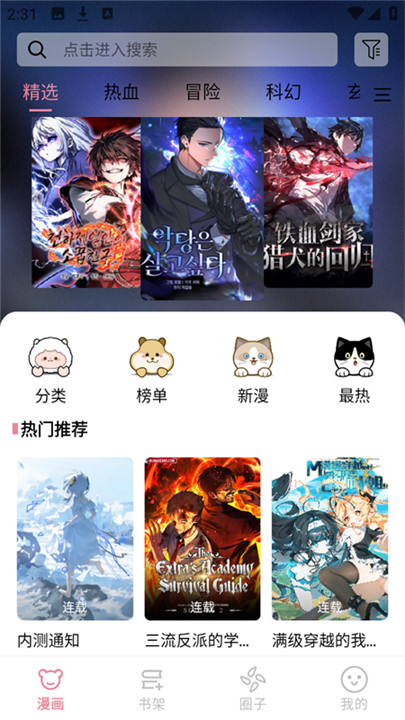3、提供了很多热门的免费漫画,阅读环境也很安全,支持一键订阅和离线下载。
