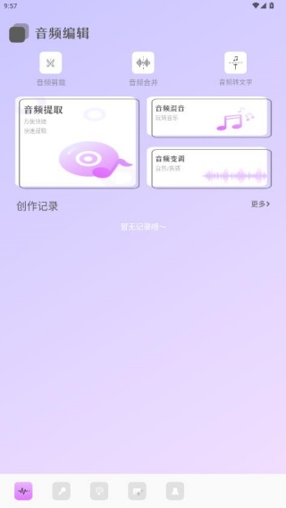 2、进入主页后,可以看到丰富的功能选项,例如音乐剪裁等多种工具;