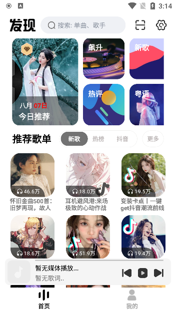 1、打开云母音乐1.0.9播放器软件后,在首页可以浏览到大量精选歌单。