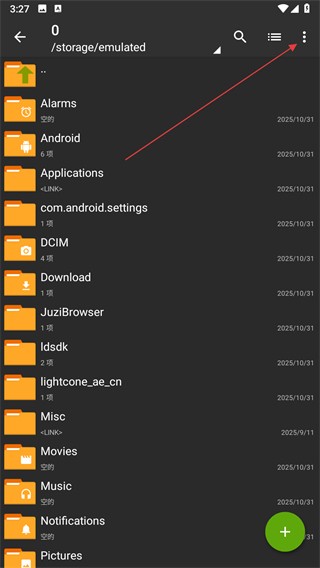 1、打开老外管理器ZArchiver应用后,点击右上角的三点图标,功能菜单随之弹出。