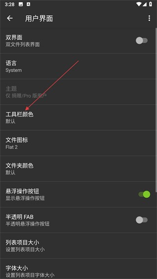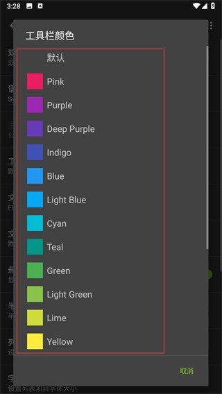 4、在用户界面设置页面中,点击“工具栏颜色”选项,即会弹出可选颜色列表。