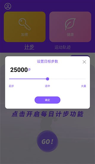 3、当然,在开始之前,需要先为自己设置一个每日目标步数,通过滑动选择后点击“确定”。