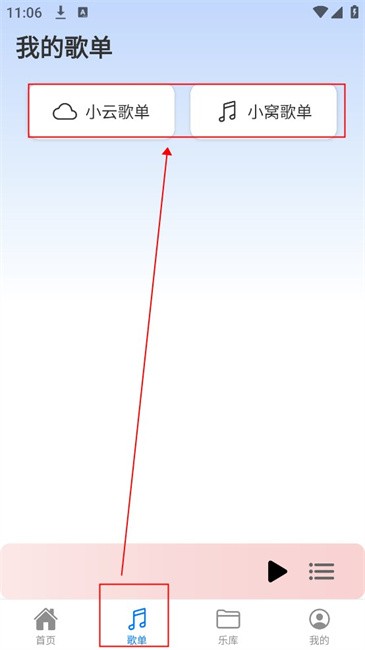 4、接着打开青听音乐,进入【歌单】,选择“小云歌单”或者“小窝歌单”。
