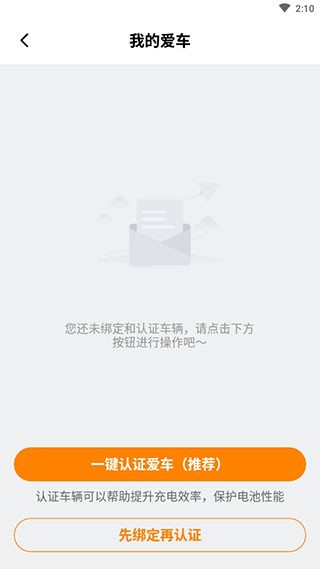 1、点击星星充电页面中间的汽车图标,然后选择“添加爱车”选项。