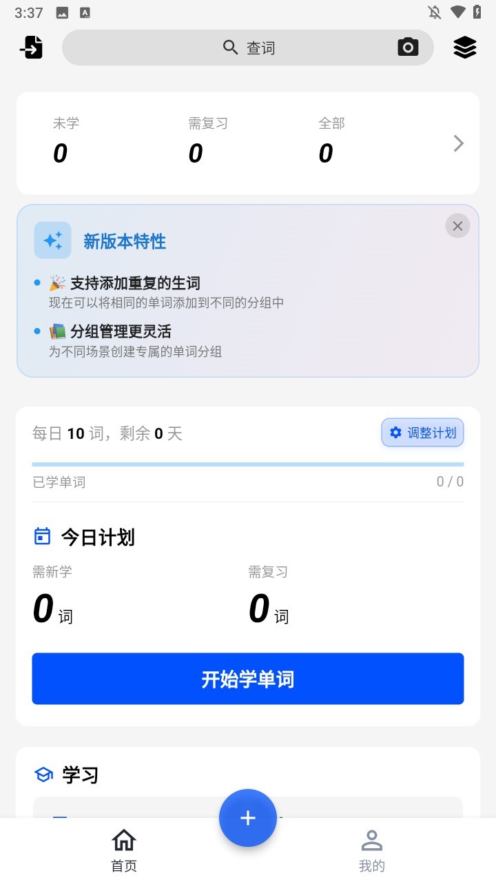 2、生词本百度最新版规划模块允许用户设置长期目标和日常任务,程序自动生成包含新学习和复习内容的每日列表。