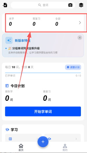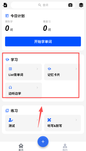 1、打开生词本智能背诵提醒软件后直接进入首页界面;