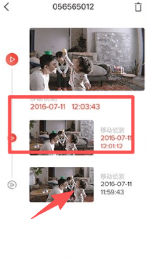 3、如果需要查看回放录像,可以进入历史记录界面,通过日期筛选想要的录像片段,点击云存储中的文件或直接插入内存卡播放所需的关键片段。